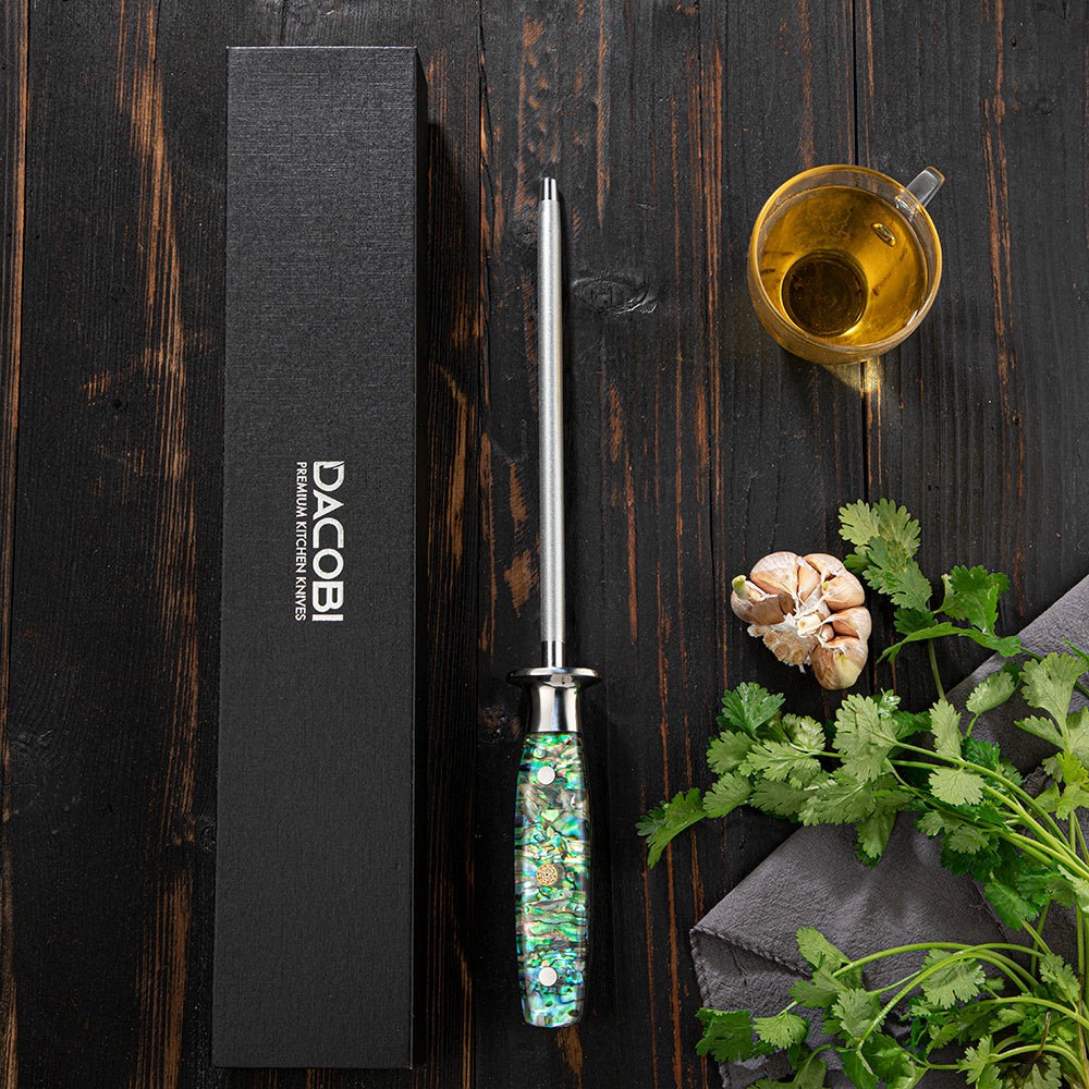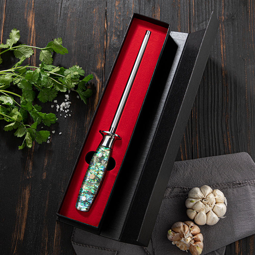 Održavajte oštricu svojih omiljenih noževa pomoću ove šipke za brušenje s ergonomskom ručkom. Izrađen od karbonskog metala, fin i precizan, ima i prsten za zaštitu ruku.