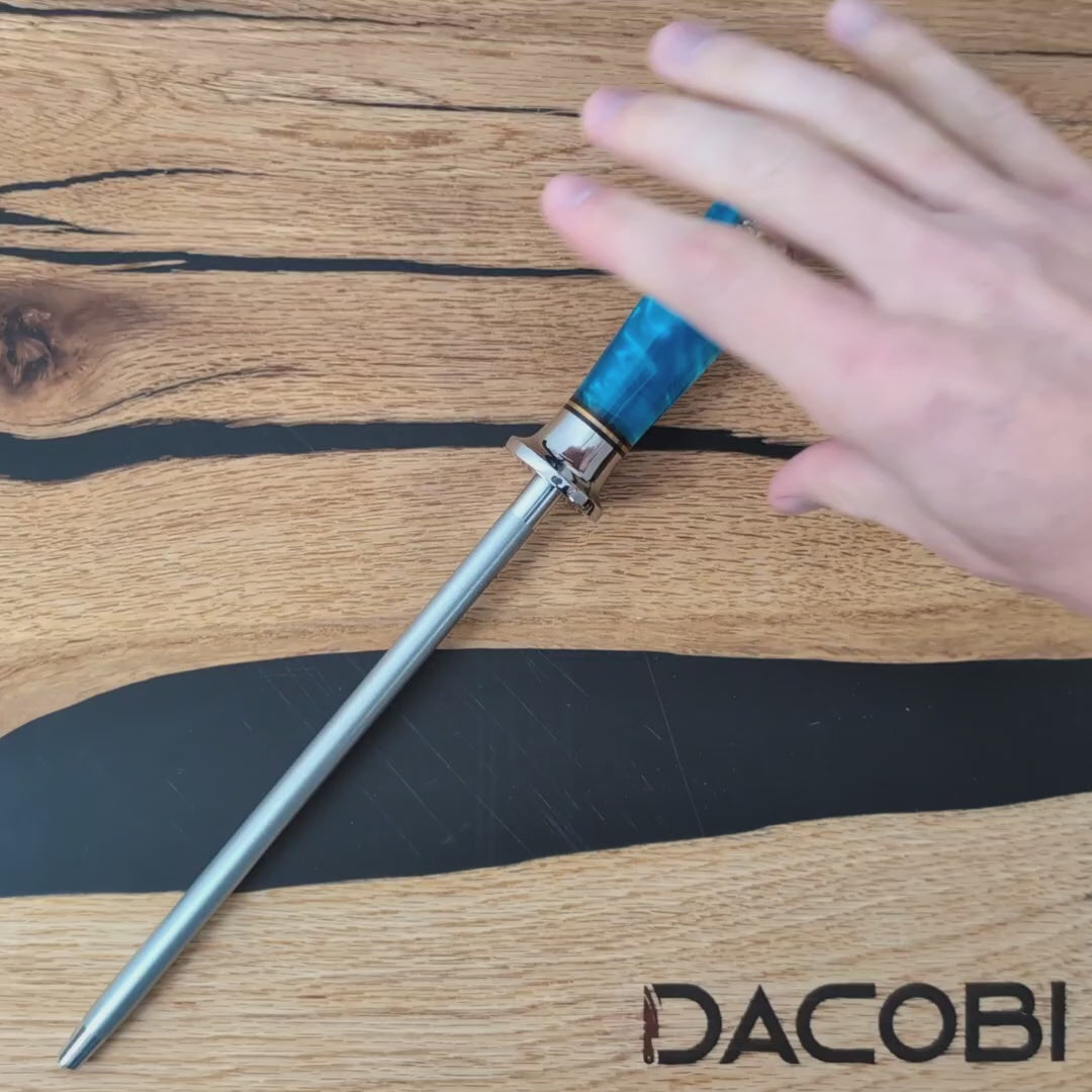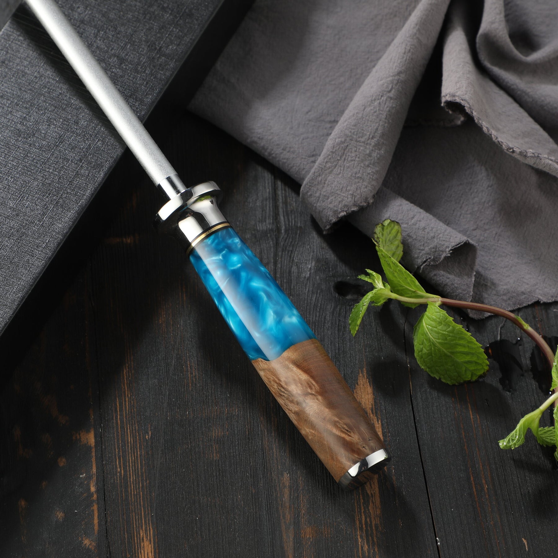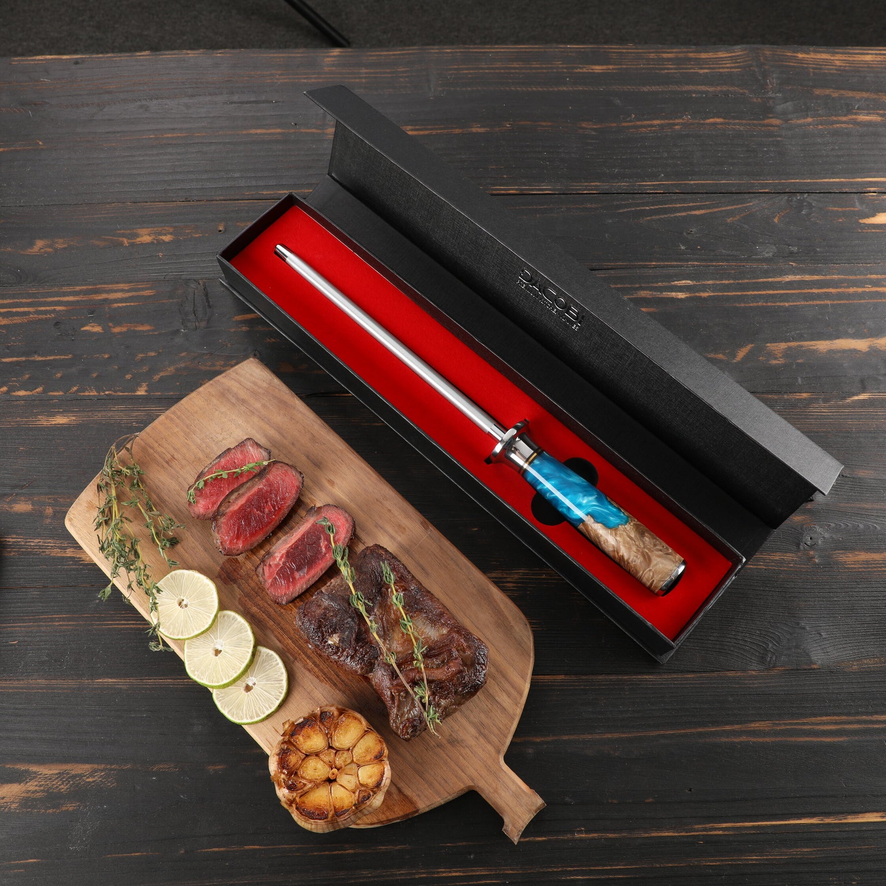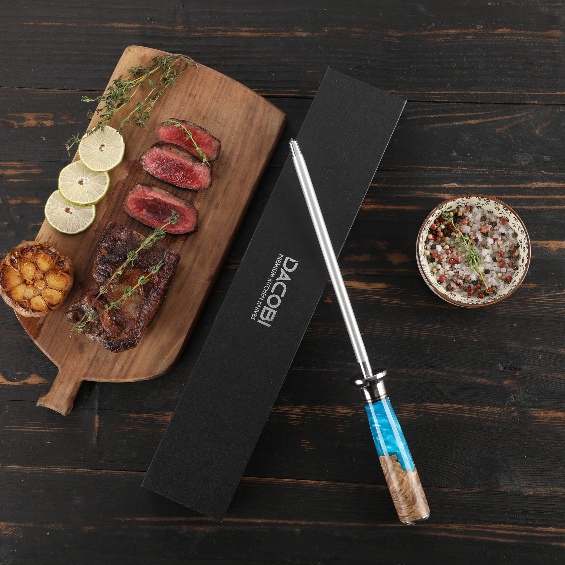 Održavajte oštricu svojih omiljenih noževa pomoću ove šipke za brušenje s ergonomskom ručkom. Izrađen od karbonskog metala, fin i precizan, ima i prsten za zaštitu ruku.
