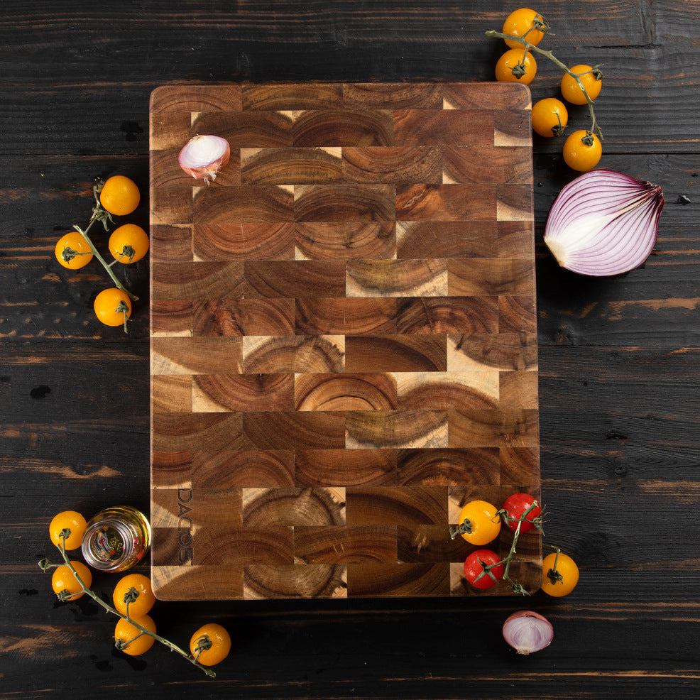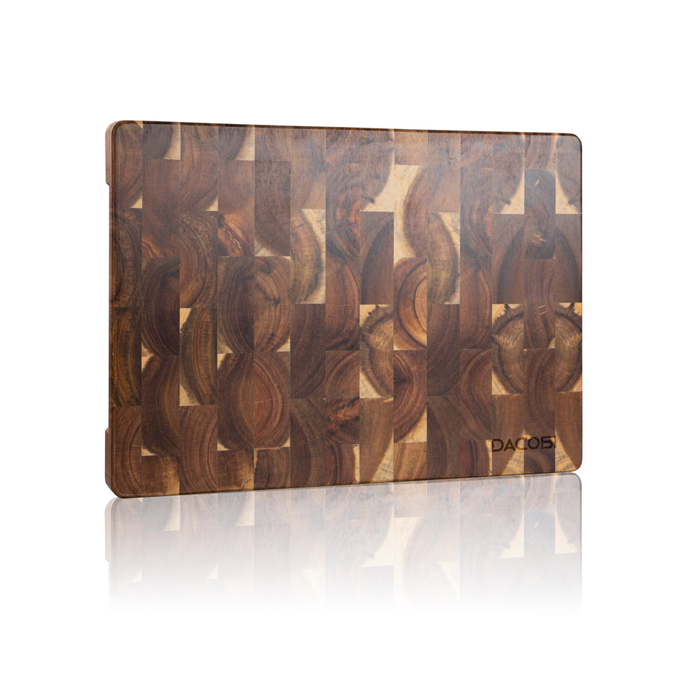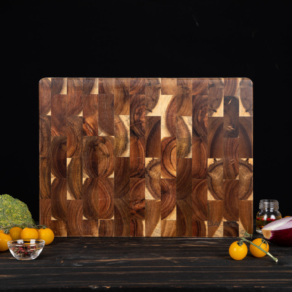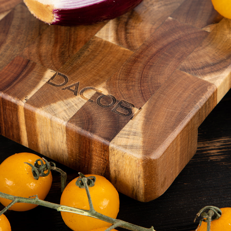 Unaprijedite svoju kuhinju s ovom čvrstom daskom za rezanje dizajniranom da traje cijeli život, idealnom za rezanje mesa, povrća ili voća, ali se može koristiti i kao plata za sir. Daska za rezanje ručno je izrađena od visokokvalitetnog bagremovog drva, koje stvara jedinstven i živahan kontrast čvorova.
