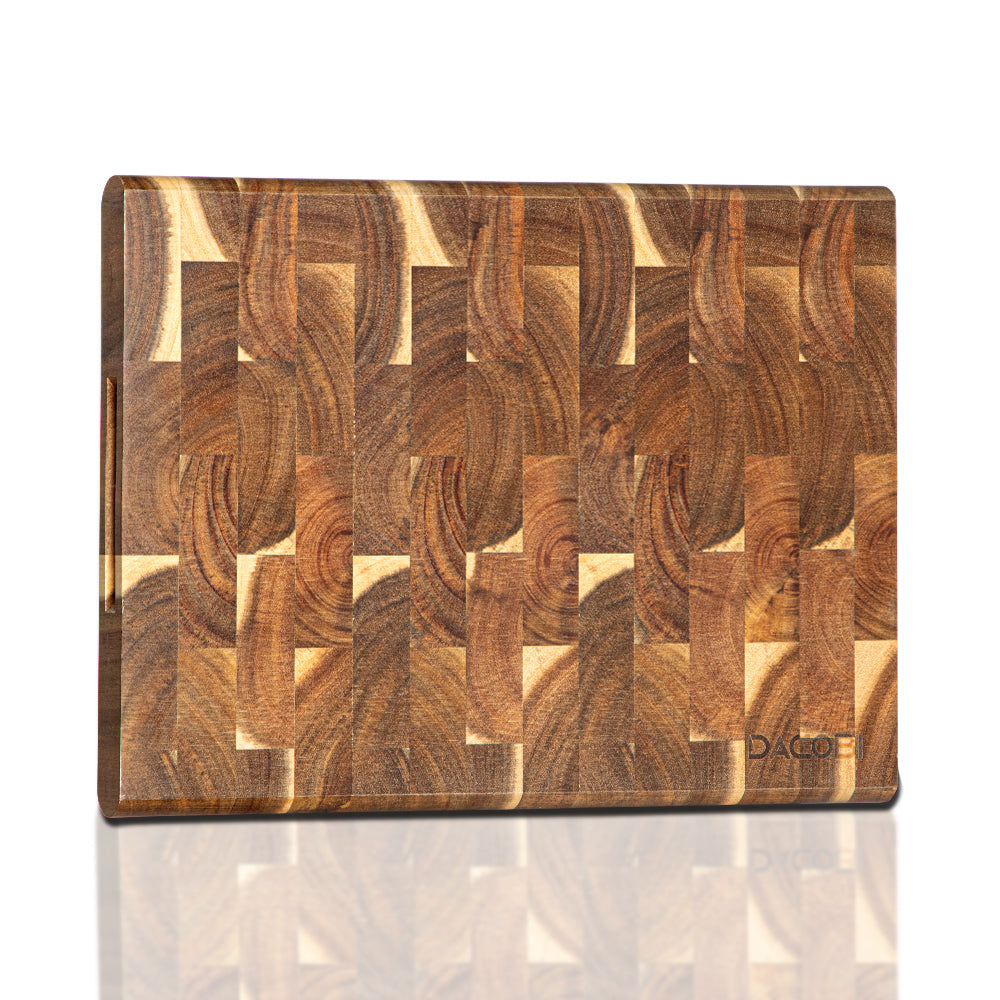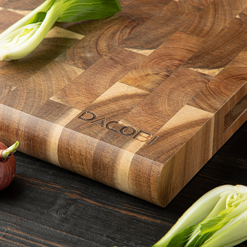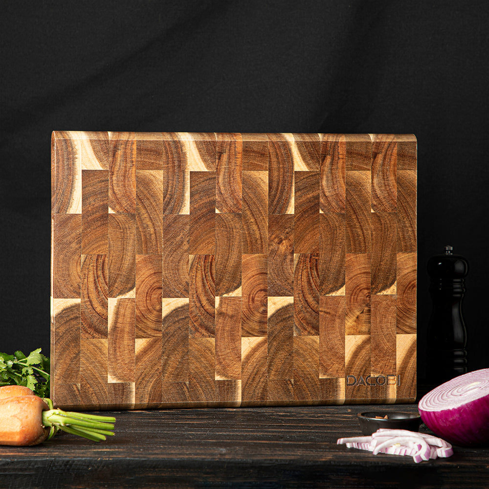 Unaprijedite svoju kuhinju s ovom čvrstom daskom za rezanje dizajniranom da traje cijeli život, idealnom za rezanje mesa, povrća ili voća, ali se može koristiti i kao plata za sir. Daska za rezanje ručno je izrađena od visokokvalitetnog bagremovog drva, koje stvara jedinstven i živahan kontrast čvorova.