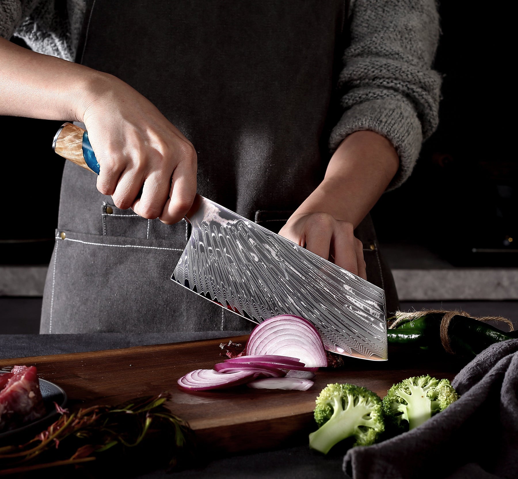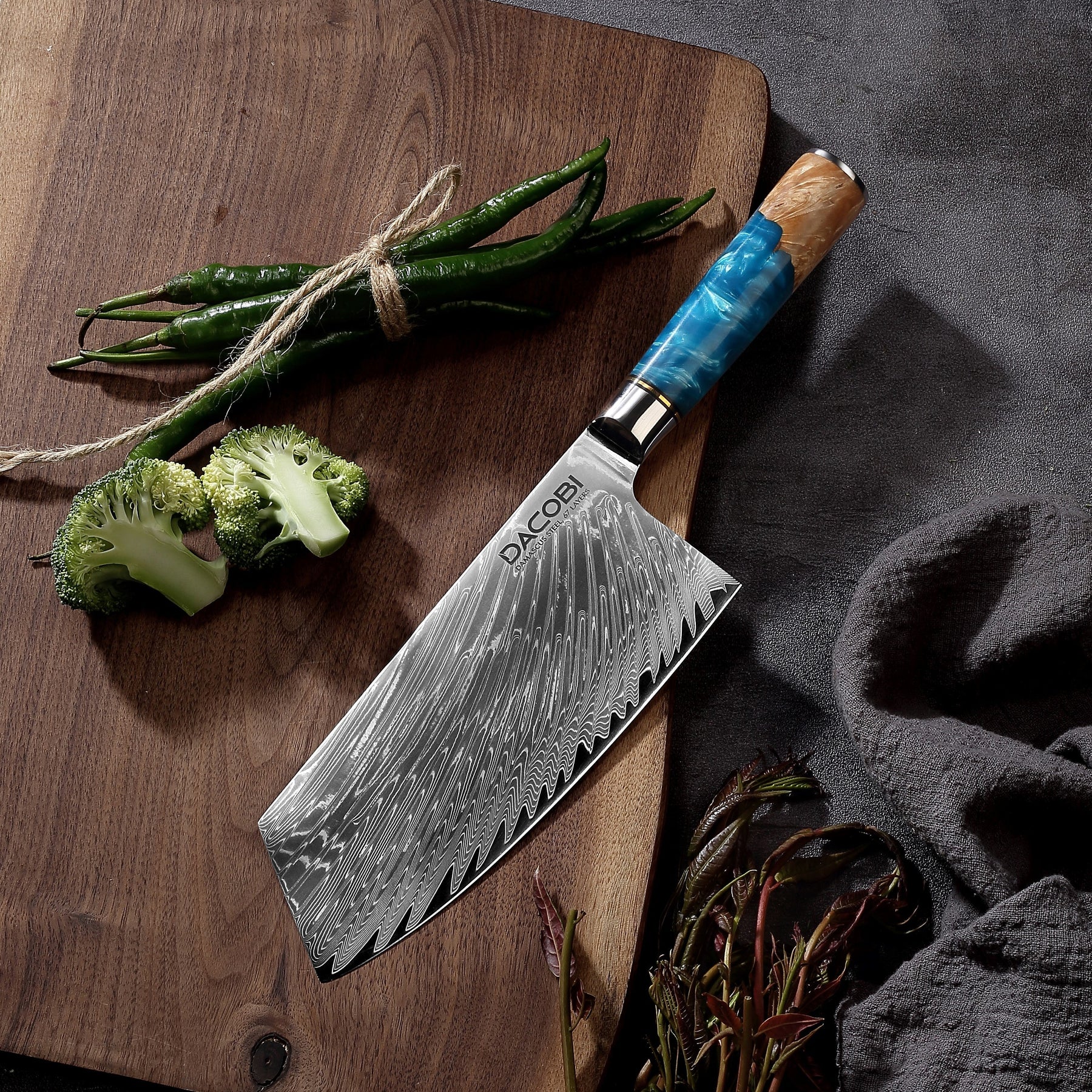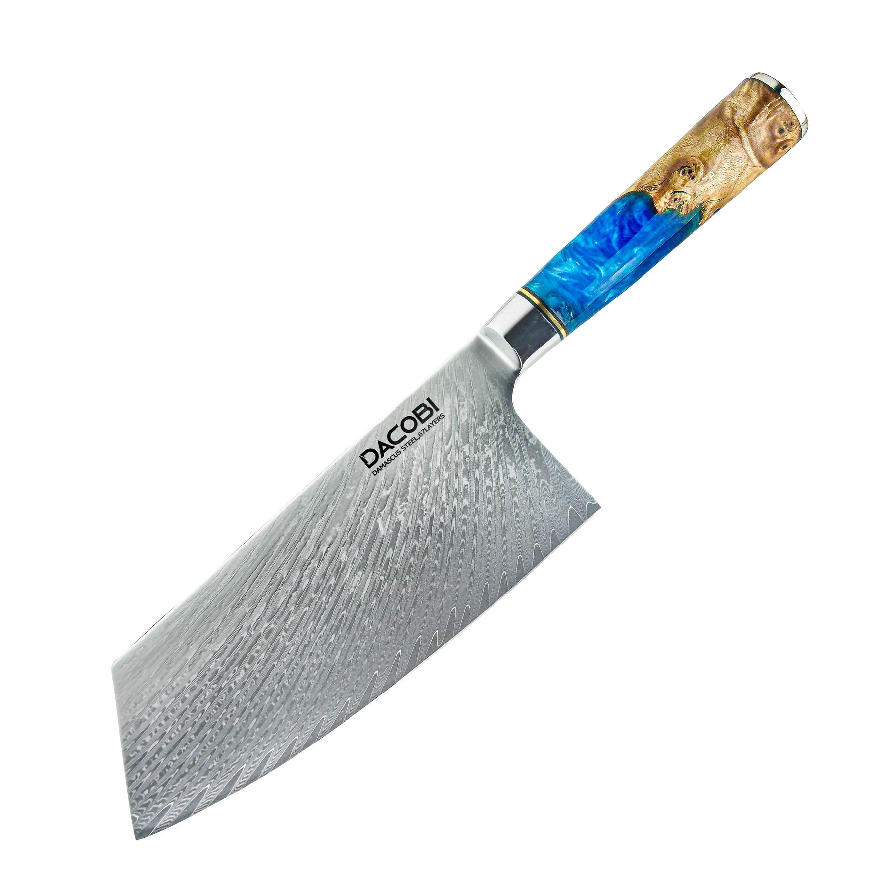 DACOBI C4 je sjekira koja spaja snagu i ljepotu. Izrađen je od Damask čelika koji je poznat po svojoj izdržljivosti, oštrini i jedinstvenom uzorku. Oštrica ima širok rub i uravnoteženu težinu koja s lakoćom može rezati i usitniti bilo koju hranu. Ručka je izrađena od plave smole i tvrdog drva, što daje dašak elegancije i udobnosti. C4 je profesionalni satara koja će vas oduševiti svojom kvalitetom i stilom. Ne propustite ovu priliku da posjedujete DACOBI nož koji je jednako impresivan koliko i učinkovit.