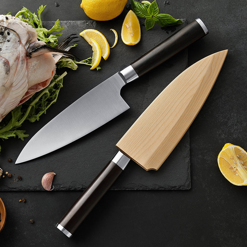 Paket sadrži: 1x Drvene korice za nož, 1x Profesionalni Deba nož C65, drvo ebanovine, 18 cm
