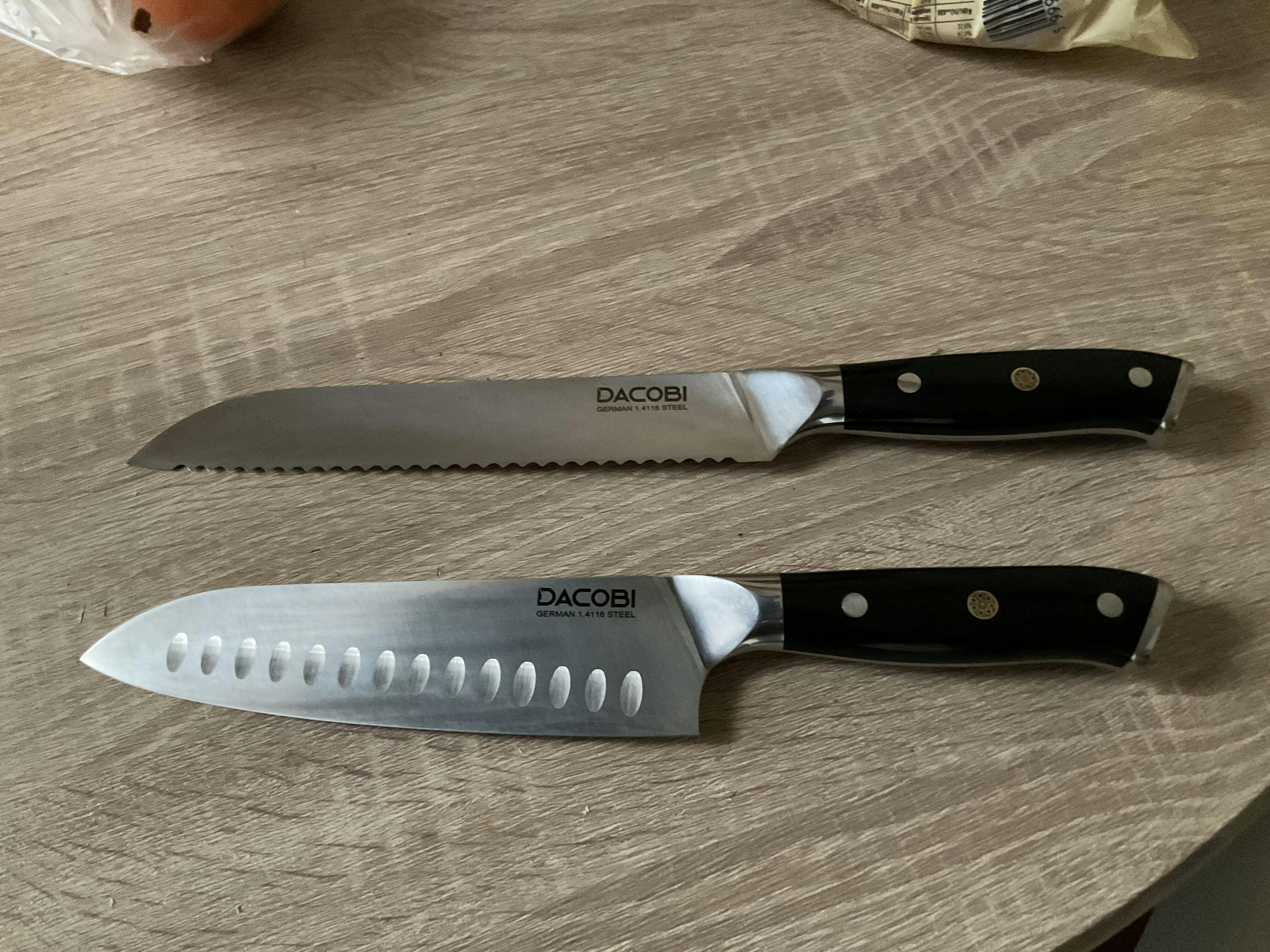 2. DACOBI noževi rade dobro i dobro izgledaju. Izrađene su od visokokvalitetnih materijala i lijepog su dizajna.